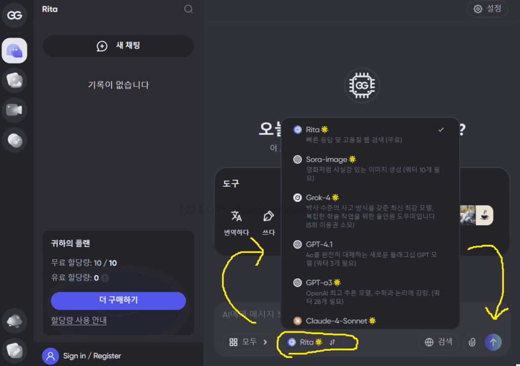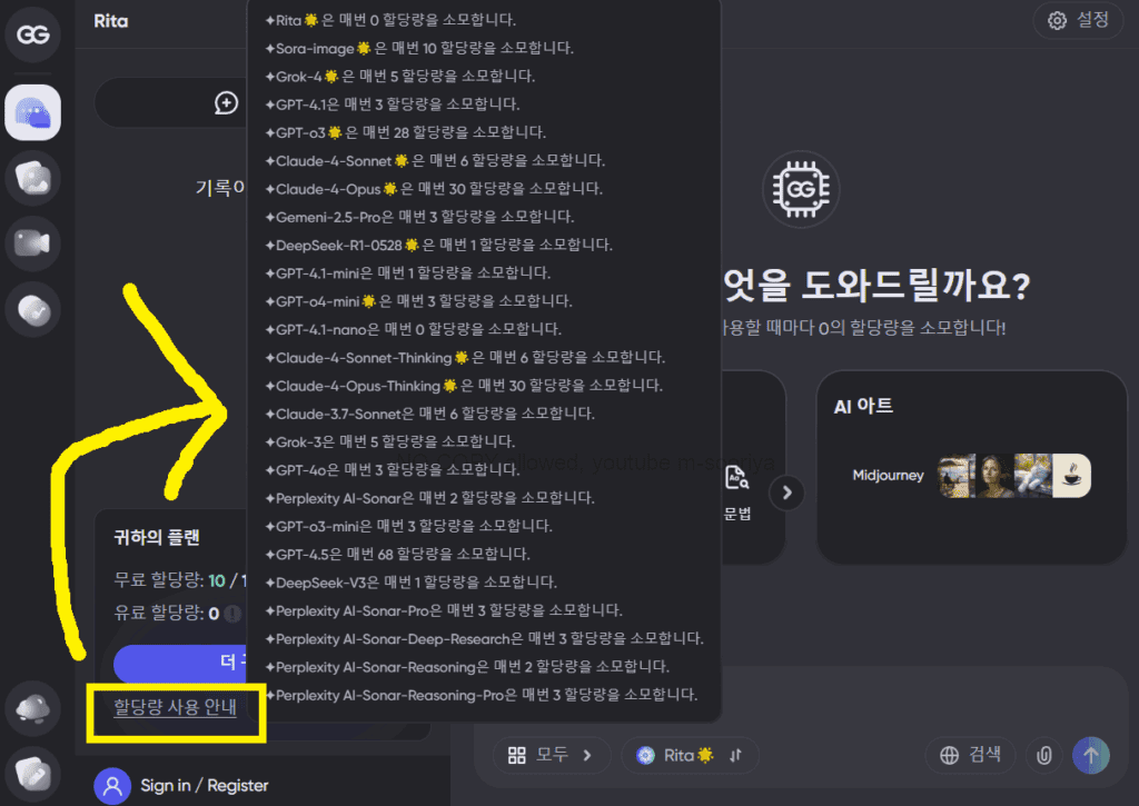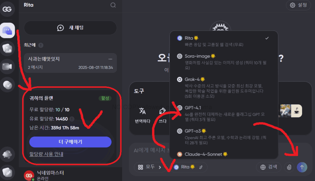 이제 할당량이 채워졌으며, AI 모델을 선택하여 사용하실 수 있습니다.