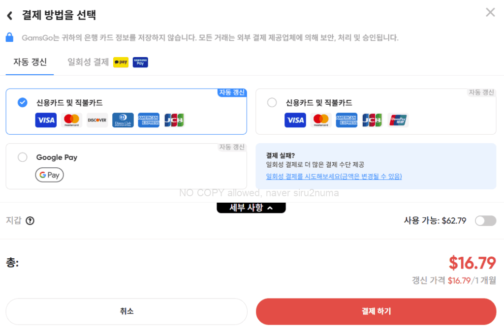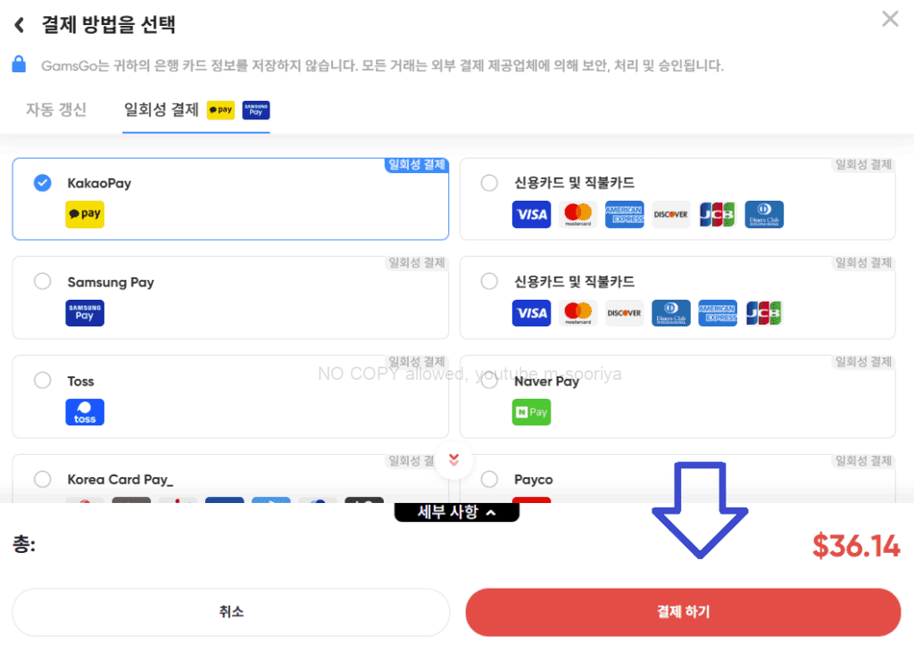 이제 편하신 방법으로 결제를 진행해 주시기 바랍니다.
