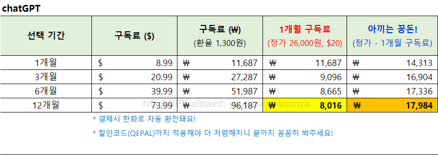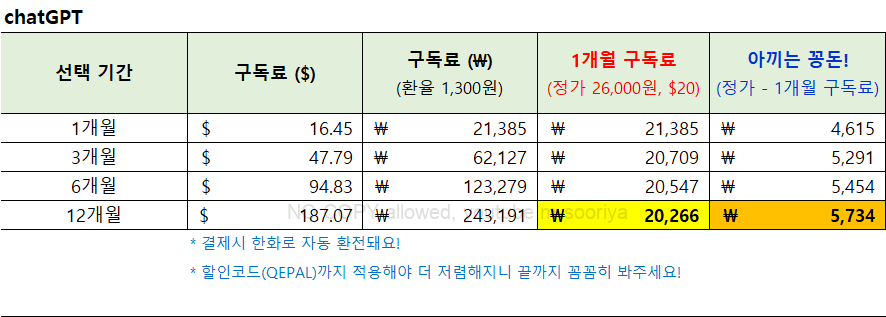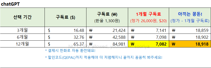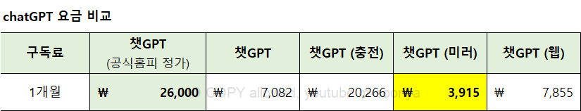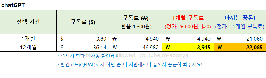 1) 챗GPT (미러) 구독료 (월 3,900원)
