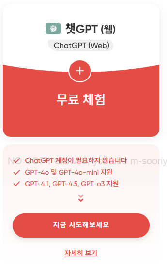 이제 화면을 조금 내리시면 챗GPT 서비스가 4가지가 있습니다. 이 서비스들을 하나씩 소개해 드리겠습니다.