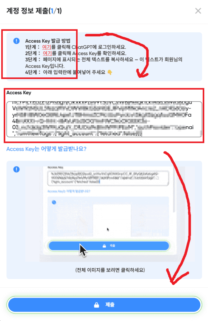 Access Key를 붙여넣고 [제출]을 눌러주시기 바랍니다.
