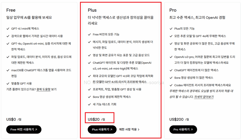 기본적으로 무료버전도 있지만 속도나 사용량, 답변 퀄리티에 제한이 있어 Plus 버전을 많이 이용하고 있습니다. Pro 버전은 1개월에 $200로 약 27만원 정도라서 매우 부담스럽습니다. 그보다 저렴한 Plus도 27,000원으로, 넷플릭스 17,000원 요금보다 비싸서 다소 부담이 되네요.