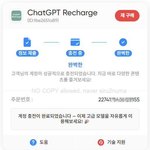 ChatGPT Recharge 에서 정보를 입력해 마무리해 주시길 바랍니다.