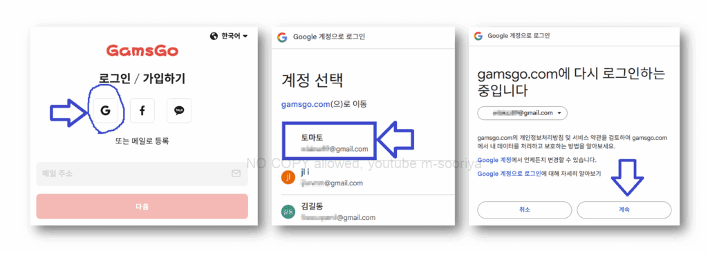 여러 가지 계정으로 가입하실 수 있지만, 구글 계정으로 편리하게 로그인하시는 것을 추천드립니다.
