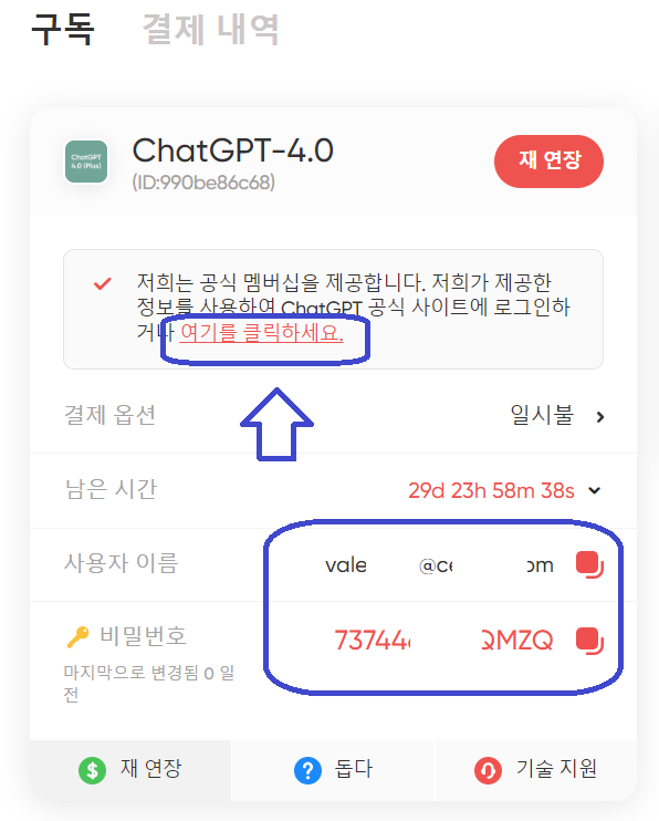 이제 [여기를 클릭하세요]를 클릭하시거나 chatGPT 사이트에 접속하셔서 아래 계정으로 로그인하시면 됩니다.