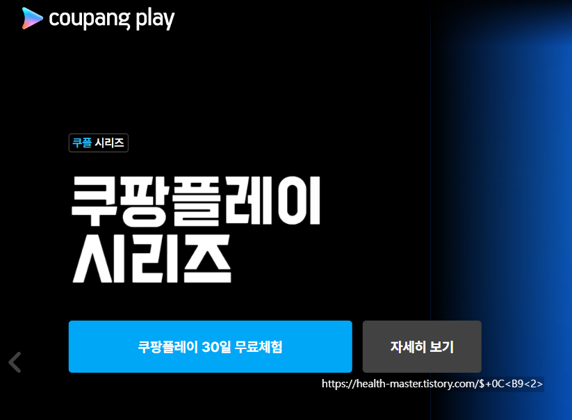 쿠팡 플레이 사이트를 열고 [쿠팡 플레이 30일 무료 체험] 버튼을 클릭합니다.